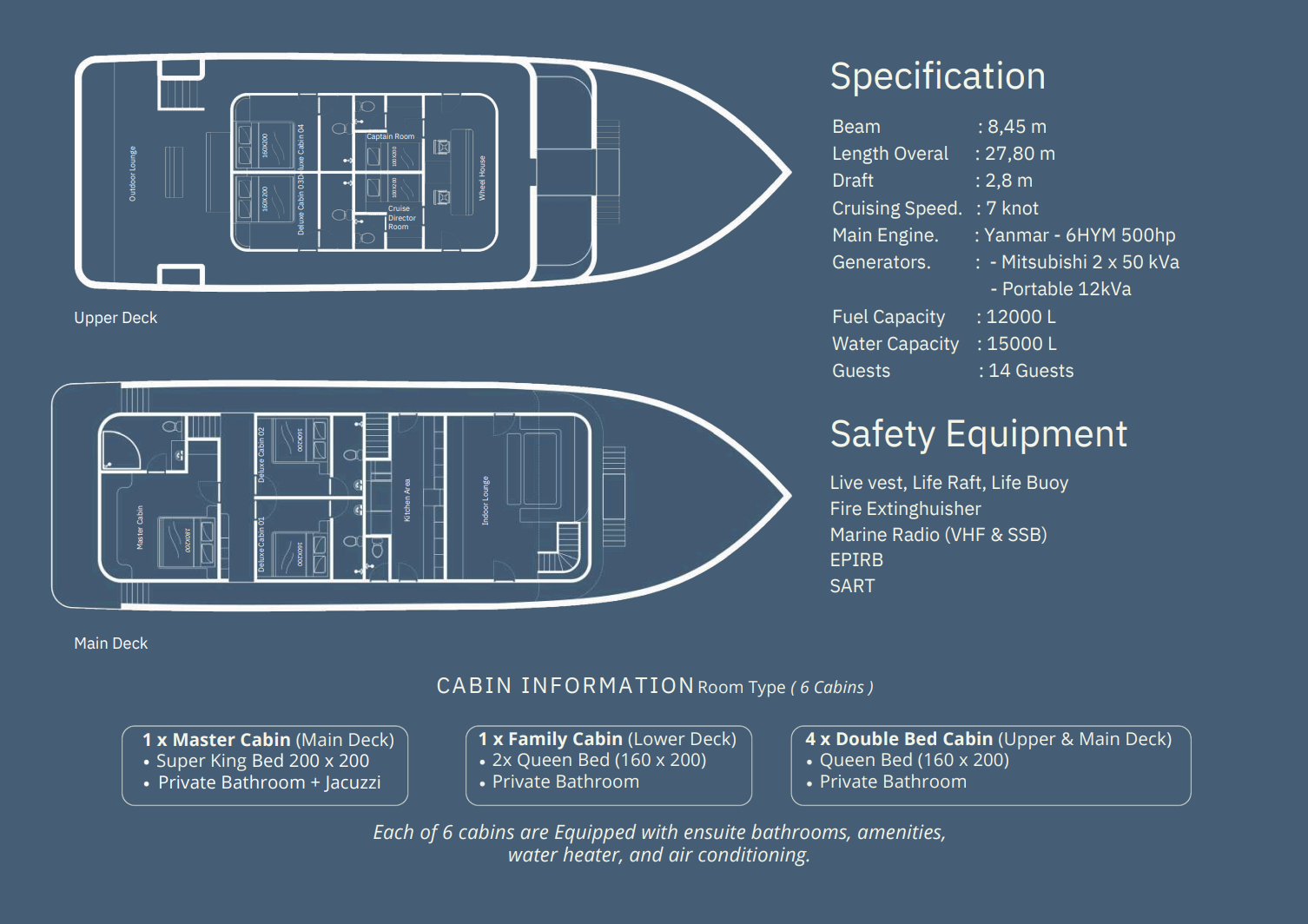 Le Costa is a luxury wooden yacht by Buttonscarves, offering an unforgettable journey through the stunning waters of Indonesia. Originally crafted as a traditional cargo vessel, Le Costa has been transformed into a sophisticated yacht designed for both comfort and adventure. With a professional crew of 14, we ensure every moment of your voyage is safe, memorable, and filled with unparalleled hospitality.